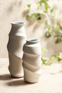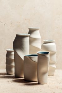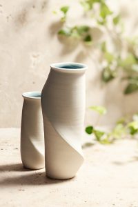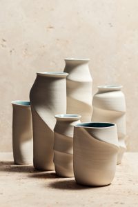 Les céramiques de Jacqueline Jover semblent presque tissées, comme drapées, comme si le vent avait tendu la voile si longtemps qu’elle s’était figée dans cette position.